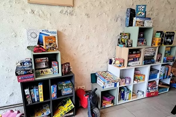 le fun pour tous : accès illimité à nos jeux en bois, jeux de société, sauna, et jeux de plein air.